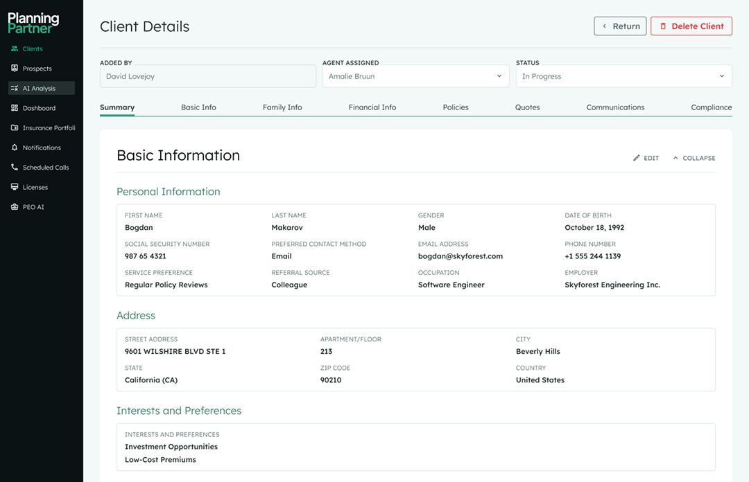 Clients often hold multiple policies—group, individual, and from different carriers—which makes managing it all a challenge. Planning Partner provides agents and advisors the tools to organize, track, and analyze coverage needs.